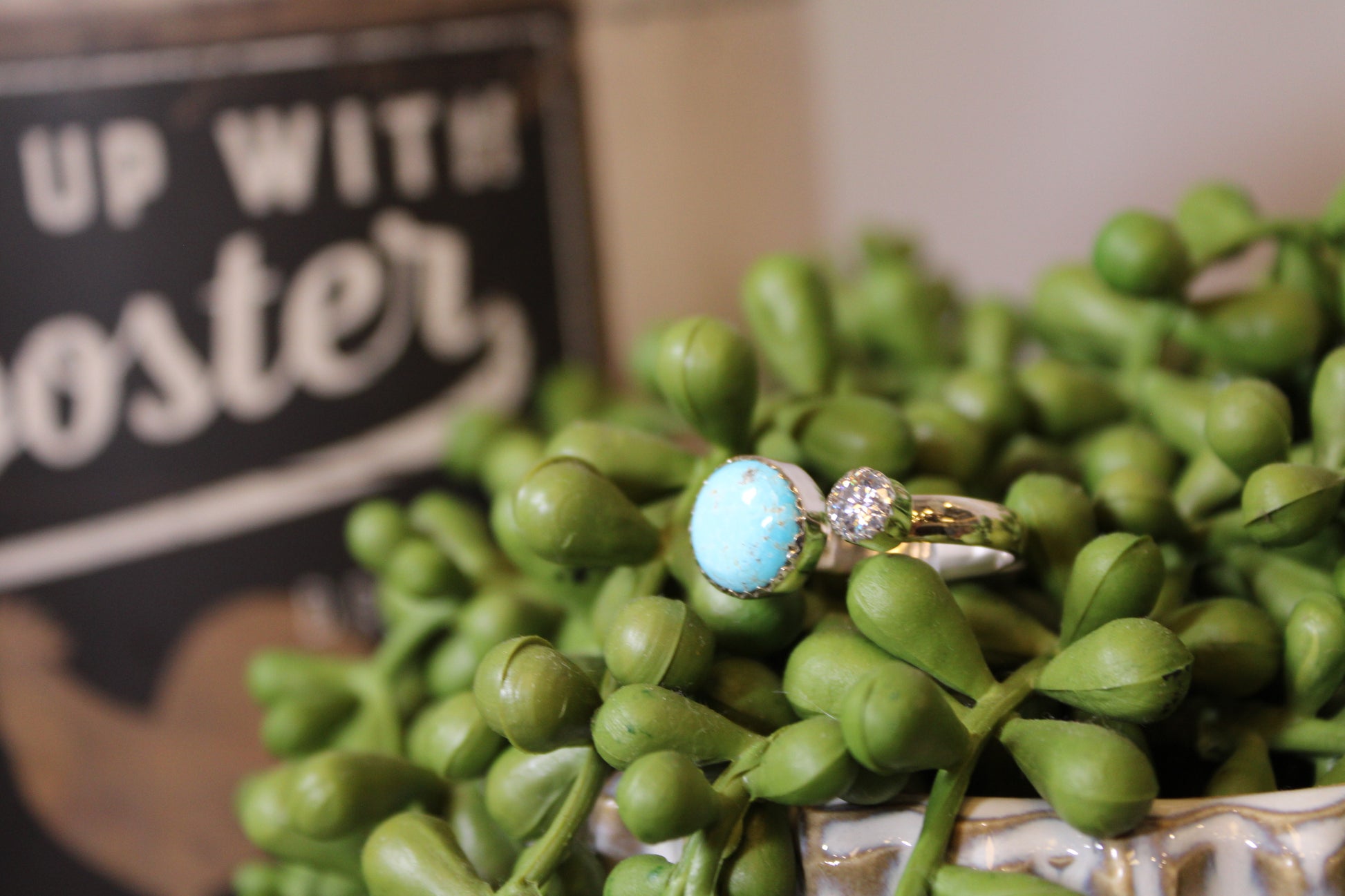 A timeless design that combines the earthy character of turquoise with the refined brilliance of moissanite, making it a unique addition to any jewelry collection.