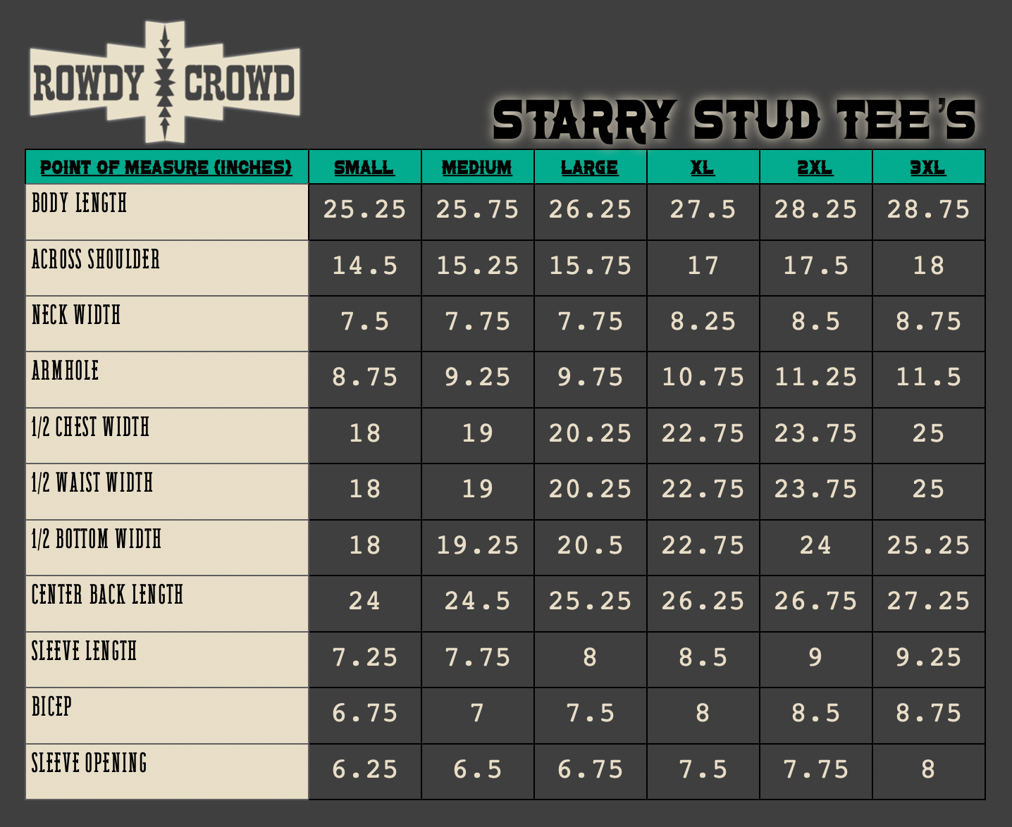 Want to add a bit of edge to your western style? Made in a mocha/taupe color, comfortable material, this top features stunning studs around the neck and shoulders. The Starry Stud Tee is easy to dress up and down. Pair with a duster or by itself!