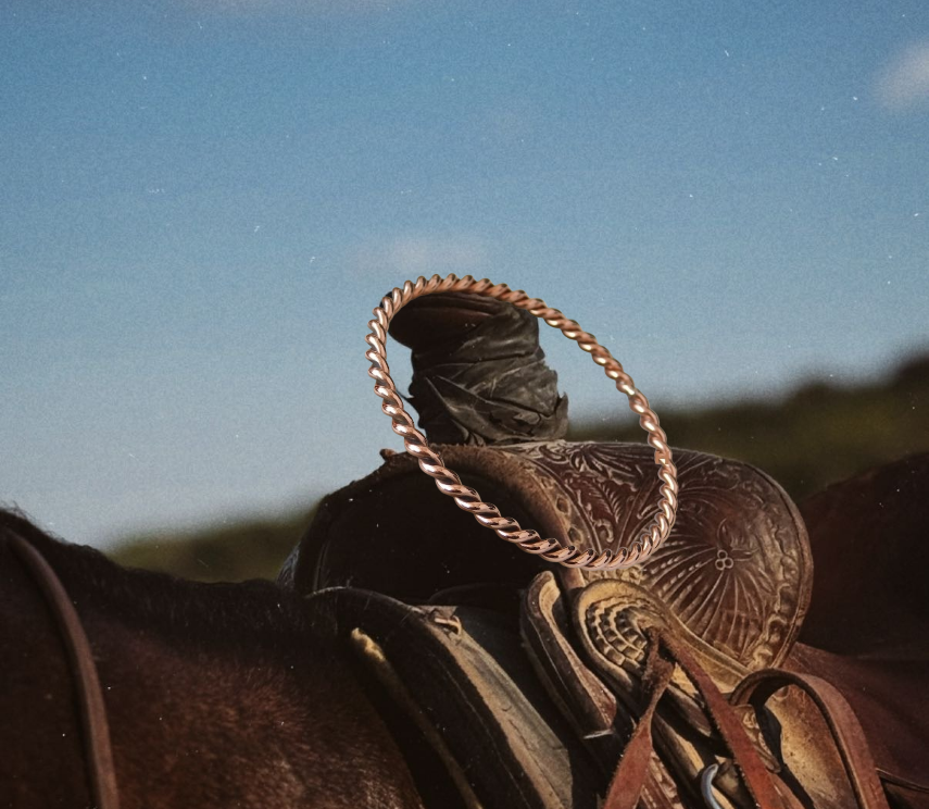 This bold yet timeless Navajo copper bangle is handcrafted by indigenous artisans, honoring generations of silversmithing and metalwork tradition. Designed in a twisted rope style, the bracelet carries both a rustic Western feel and a meaningful connection to Navajo heritage.