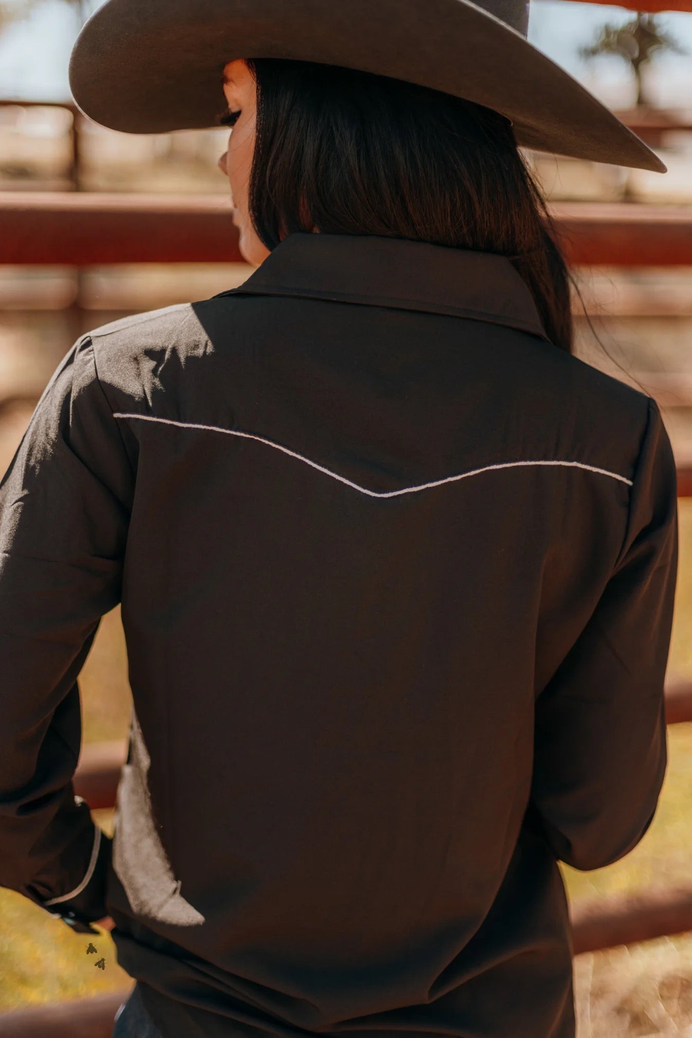 We took it old-school western and gave it a fresh twist — retro vibes with a soft, cotton-like fabric that feels amazing. The 3D rope-effect embroidery adds that standout detail, while the turquoise snaps keep it classic.